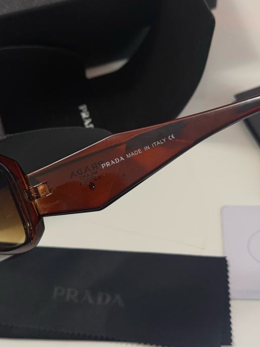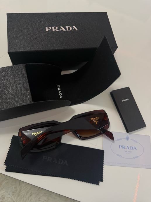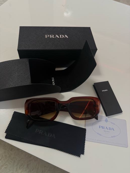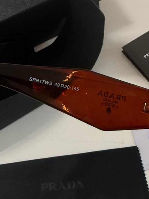 Prodajem Prada sunčane naočale, potpuno nove s etiketom. Naočale su u prekrasnoj smeđoj boji. Dolaze s kompletnom opremom - kutijom, futrolom, krpicom za čišćenje i karticom.