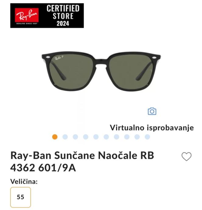 Prodajem potpuno nove, nikada korištene Ray Ban polarizirane naočale, tip: ORB4362 601/9A, veličina 55.