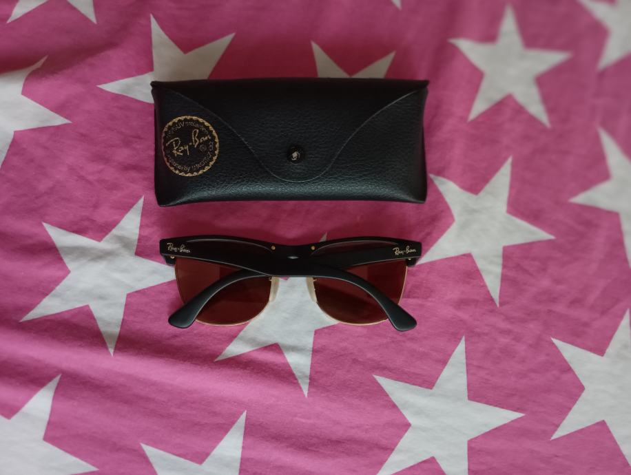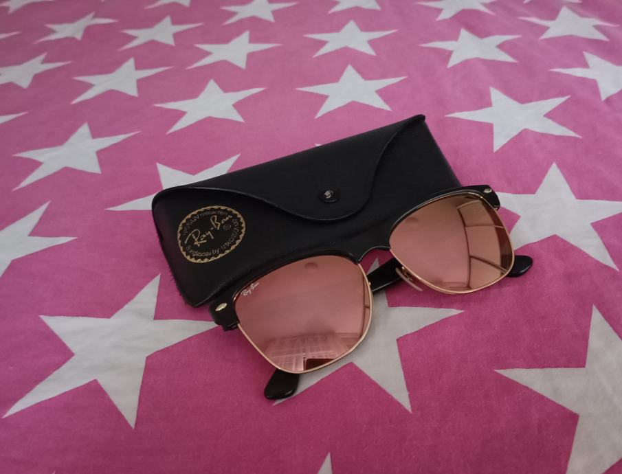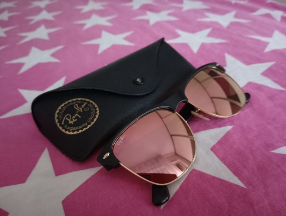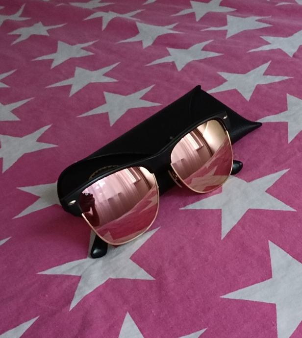 Zlatni metalni okvir, crni gornji rub i nožice, stakla roza zrcalna. Originalne!