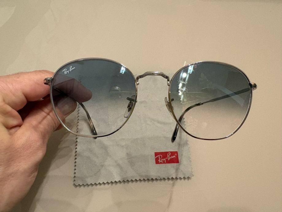 Prodajem originalne Ray Ban sunčane naočale u rabljenom ali odličnom stanju. Elegantne naočale s metalnim okvirom i gradijentnim lećama dolaze s originalnom torbom za čuvanje i krpicom za čišćenje. Savršen modni dodatak za svaku prigodu koji pruža pouzdanu zaštitu od sunca.