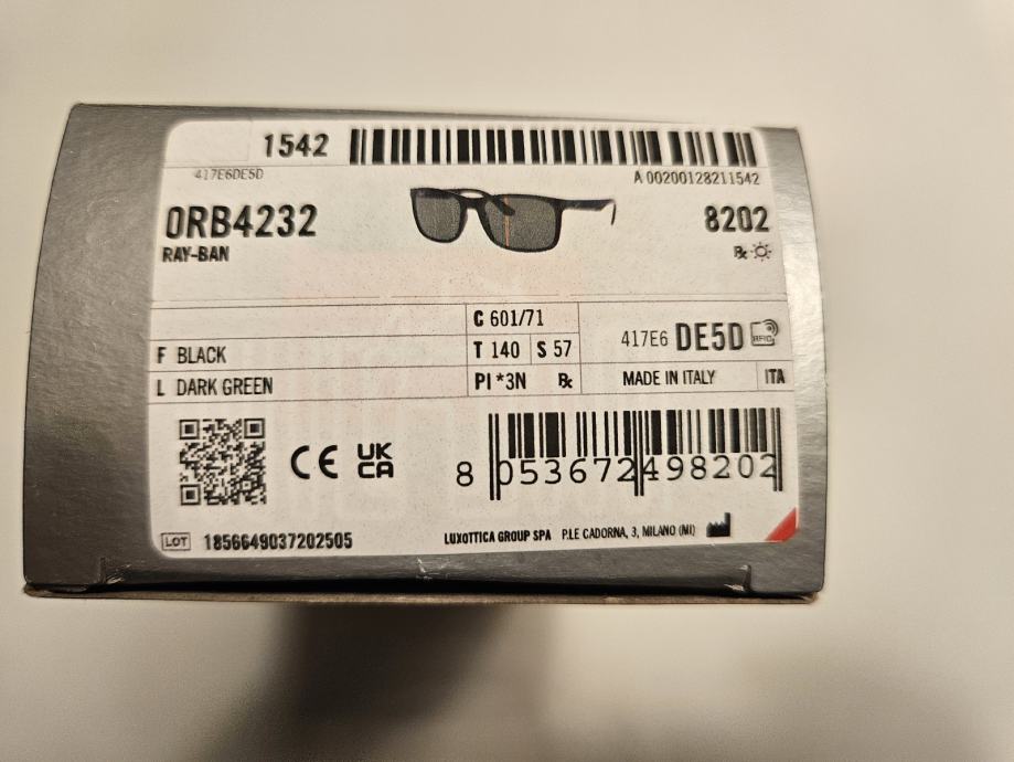 Rb4232 muske suncane naocale, narucene online, ne odgovaraju mi, nove u paketu i s futrolom i krpicom. Samo isprobane.