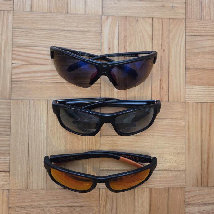 Sportske sunčane naočale prodajem,quenchua 3 para,jako malo nošene,služile kao zamjenske,kao nove,bez ijedne ogrebotine,cijena za sve troje je 25 eura..