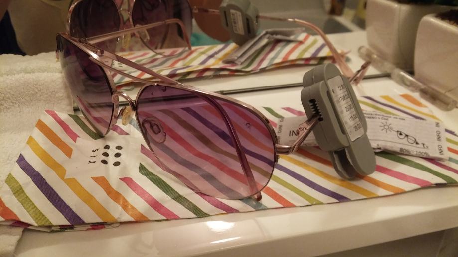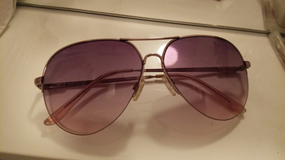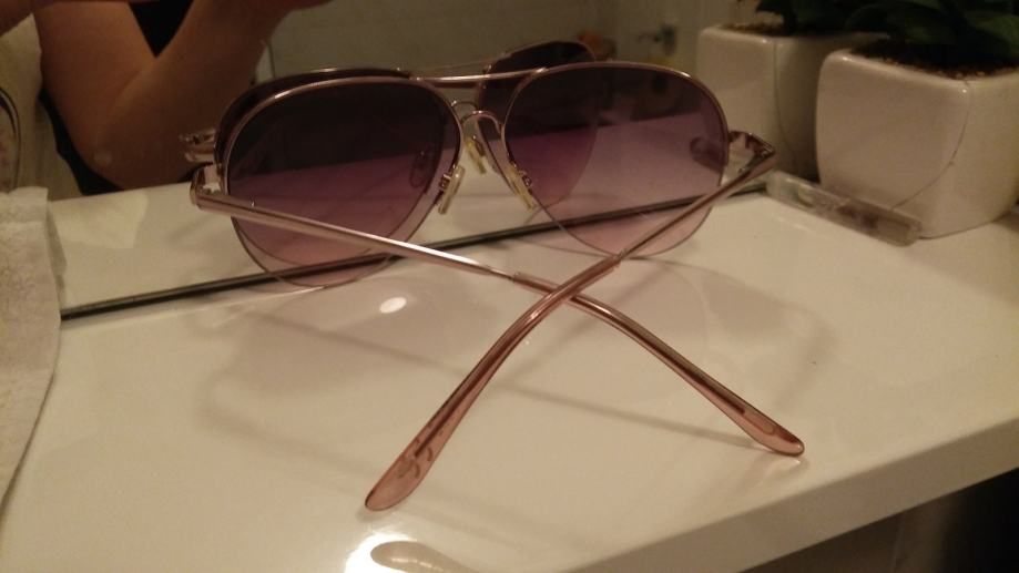 Nove sunčane naočale like ray ban. Još imaju privjesak i cijenu. Model su kao ray ban sa rozim staklima ona lijepa boja stakla. Imaju zaštitu iz trgovine.