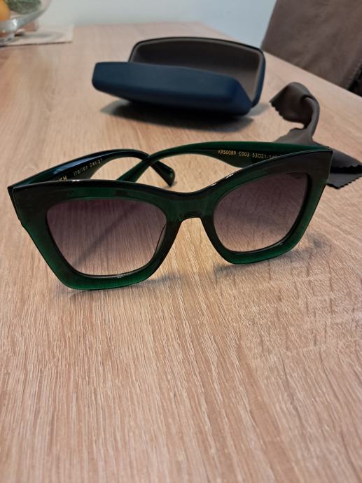 Prodjem nove naočale. Tamno zeleni okvir. Kupila, ali ne sviđa mi se kako mi stoje. Nisu nošene. Boja okvira tamno zelena. Cijena novih je bila 200 eura. Prodajem ih za pola cijene.