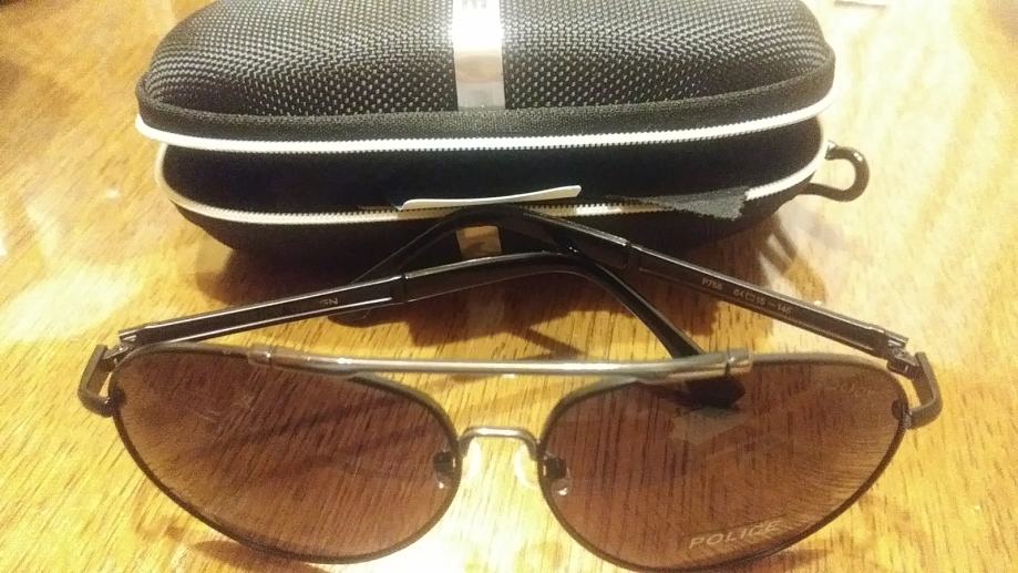 Prodajem nove i nekorištene sunčane naočale Police Aviator, polarizirane, čvrste, lagane, okvir od aluminija. Logo se nalazi s gornje strane lijevog stakla i sa unutarnje i vanjske strane leptira- zakačke za uho. U kompletu je original torbica i krpica za čišćenje. Sve je vidljivo na fotografijama.