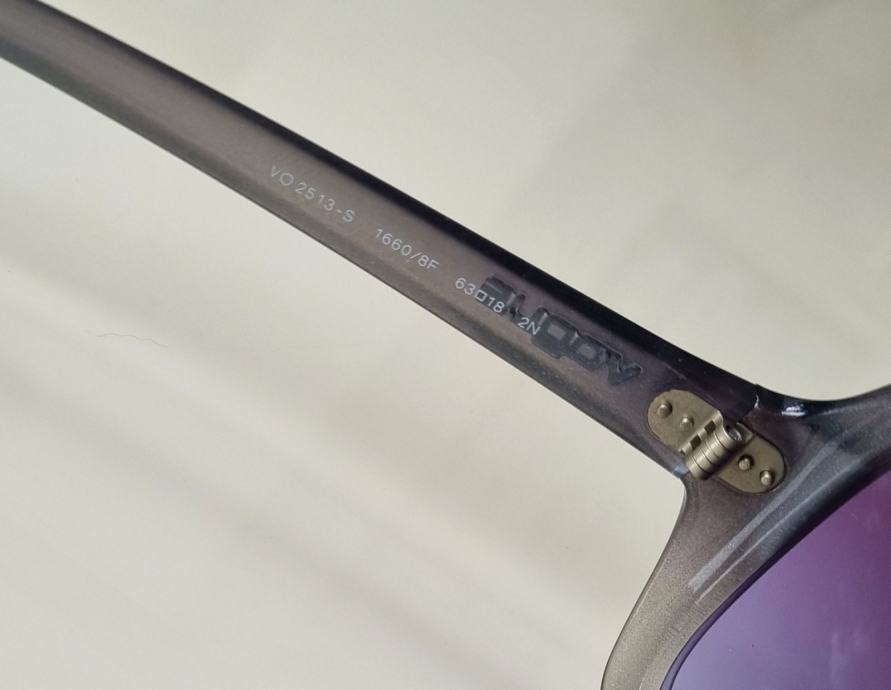 Sunčane naočale Vogue u super stanju, bez ikakvih oštećenja. Boja leće je ljubičasta, a boja okvira je tamno srebrna. Oznaka VO 2513-S. Lagane i udobne.