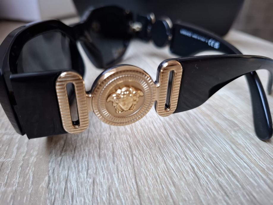 Prodajem Versace original sunčane naočale, crne boje sa zlatnim logom okvir i jako efektno staklo,uz kožnu kutiju sa maramicom za brisanje,kupljene prošle godine i plaćene 250 eura. Prodajem bez oštećenja i fleka. Nošene kratko vrijeme ali ne odgovaraju uz lice.