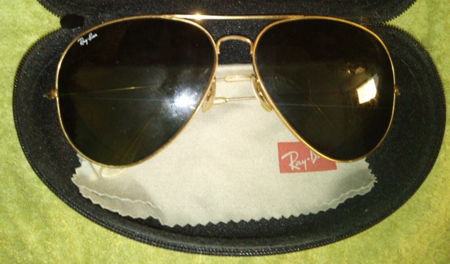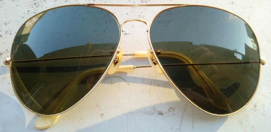 Vintage pilotske naočale Ray Ban Aviator Made in USA Bausch & Lomb (od 1999-e se proizvode u Italiji), zatamnjena stakla od pravog stakla, širina okvira 64 (od 1999-e godine najveća širina okvira je 62). Ušćuvane i ekstra rijetke.