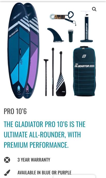 Prodajem Gladiator SUP dasku PRO 10'6" koja je savršena za sve terene s vrhunskim performansama. Daska dolazi sa svim potrebnim dodacima uključujući veslo, peraju, pumpu i torbu za transport. Nova neodpakirana, placeno 580 eur ali nemam vremena za sportove na vodi.