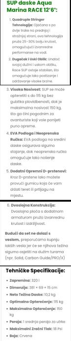 Prodajem Sup Race ,slabo korišten,stoji mi, dimenzije su 381 x 69 x 15 cm.