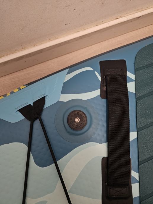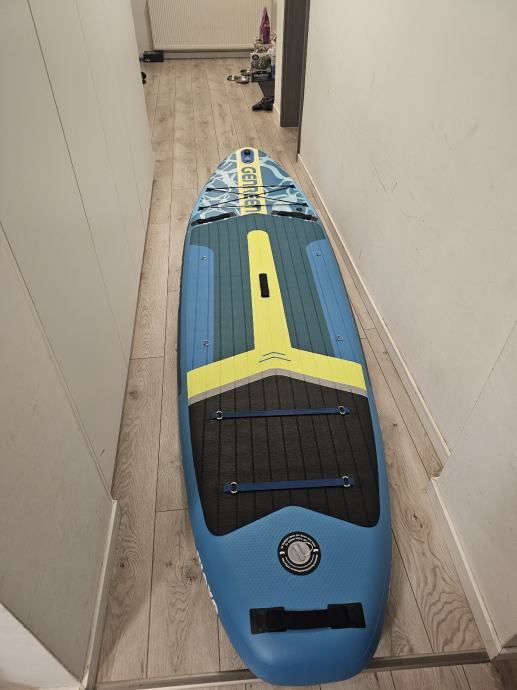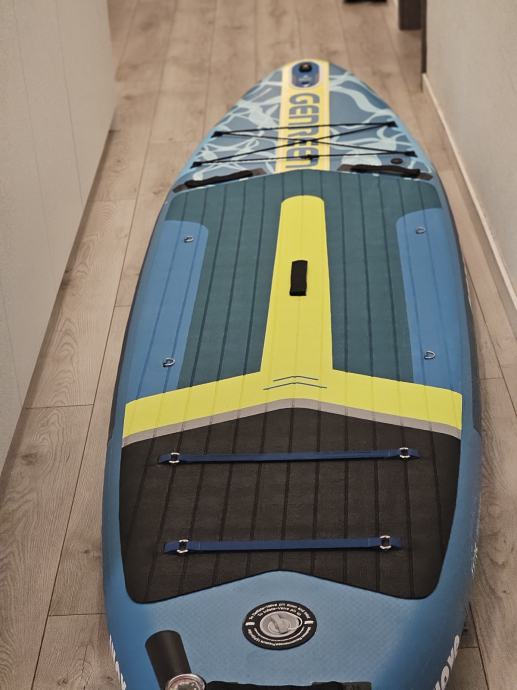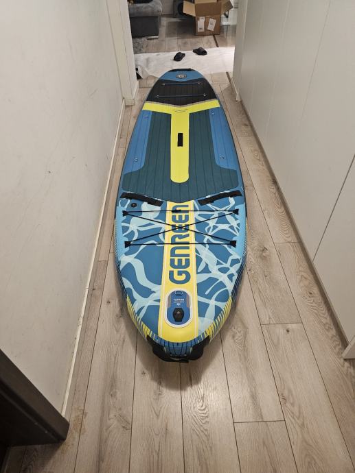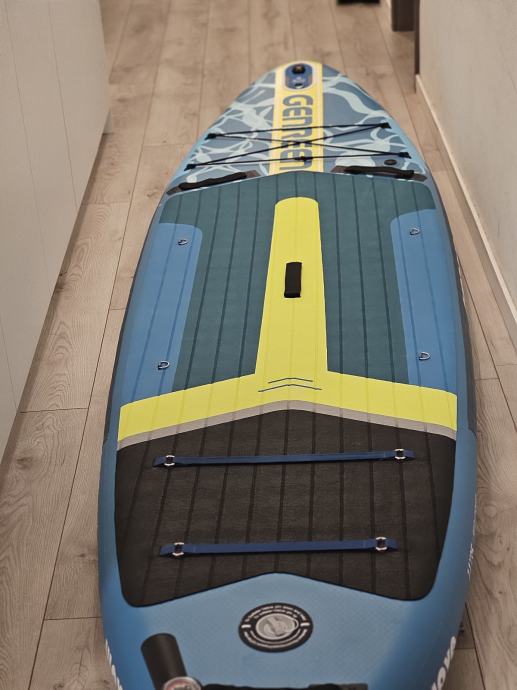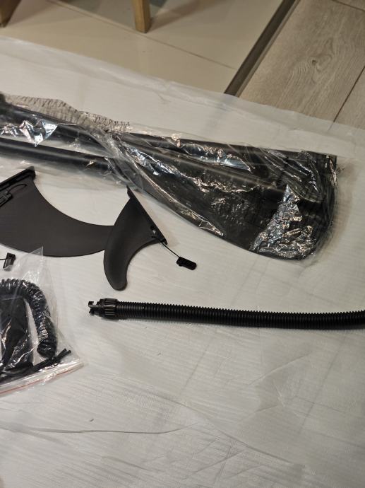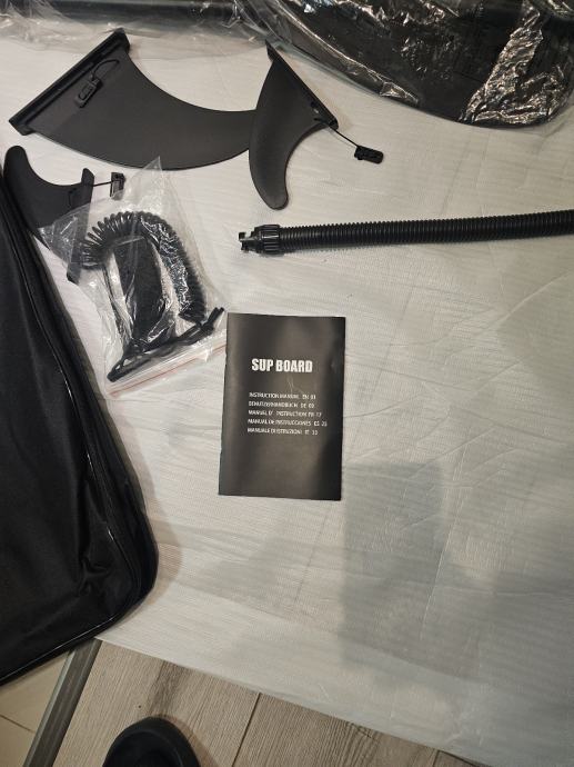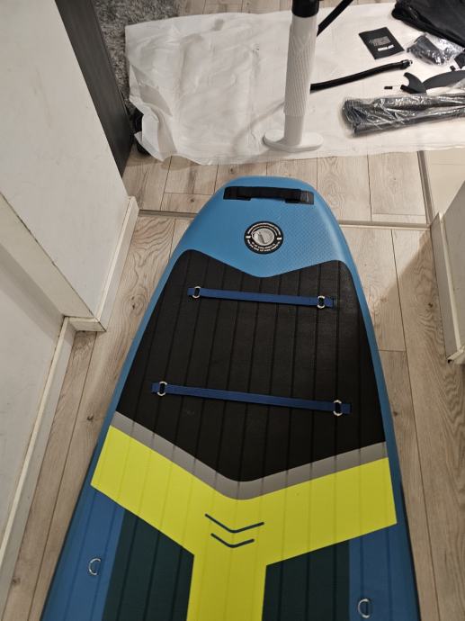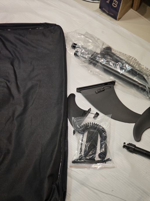 Daska raspakirana samo za slikanje ima komplet opremu vidi slike. 3 peraje za lakše upravljanje vezica za noge držačima nogu (za one bez ravnoteže) predviđeno mjesto za kameru. Daska je kvalitetna i nije proizvod za prodaju po trgovačkim centrim.Odlična za obitelj sa malom djecom(stane 2 odraslih i 2 male djece)