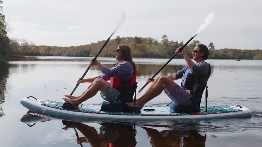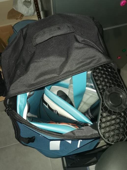 Komplet podrazumjeva: Torbu za prenosenje, dva vesla, noznu zracnu pumpu sa manometrom i regulacijom otpora pri pumpanju, vezicu sa spiralnom kabelom za nogu, dvije udobne sjedalice sa naslonom i regulacijom pomocu sistema dvostrukih prihvata, dva prihvata za stopala pri veslanju, zakrpe i uputstva