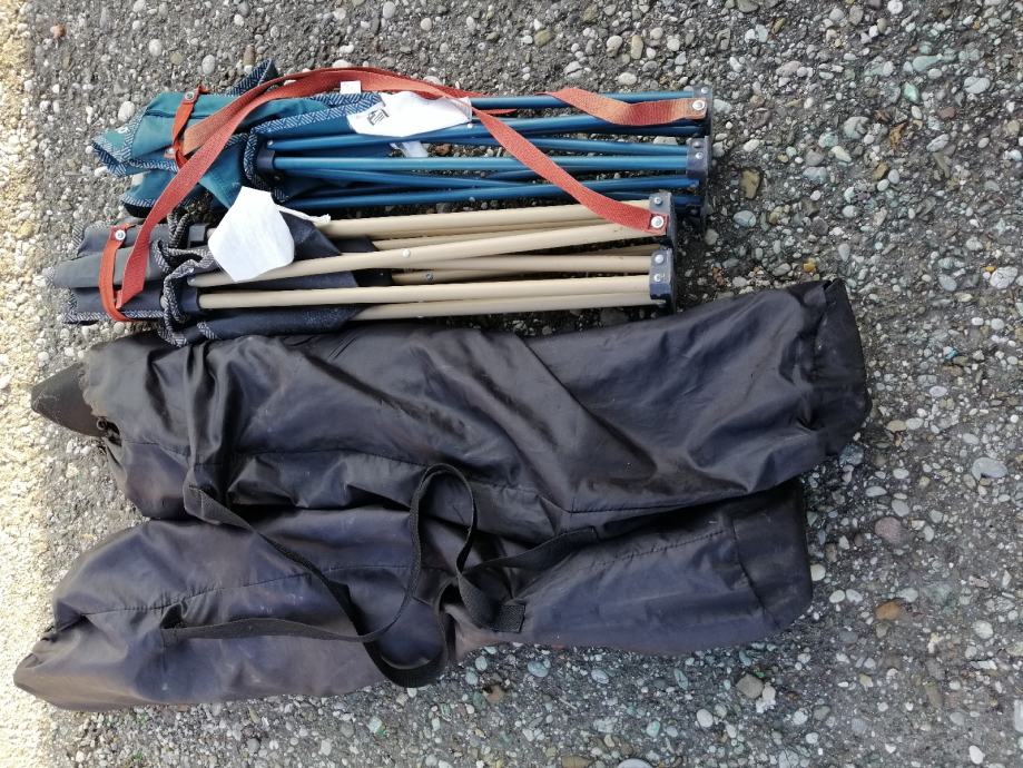 Rasklopivi štand u 3 komada, lagan za prijenos dolazi uz park. 4 stolice udobne za sjedit također.