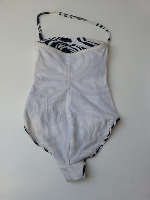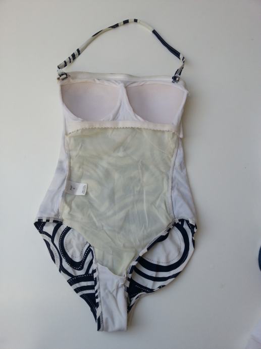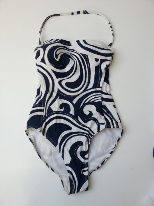 Jednodijelni kupaći kostim badić F&F predivan i elegantan, vječna klasika tamno plava i bijela, uski i sexy, može se nositi sa ili bez naramenice oko vrata, nošen 2x pa praktički nov, u cjelosti podstavljen, 34/36
