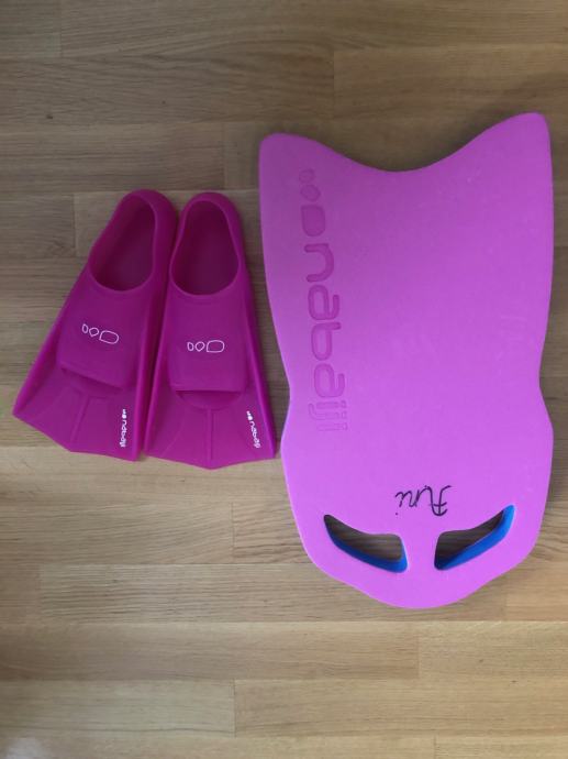 Daske za plivanje i male peraje (37/38 crne i 33/34 roza) za dečka i curicu.
