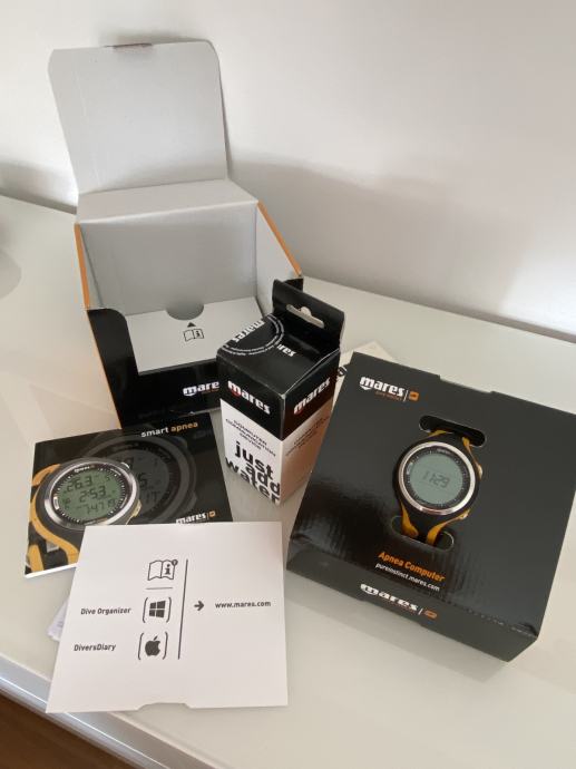 Prodajem Maresov Smart Apnea ronilački sat (Diving Computer). Sat je uščuvan i bez ikakvih znakova korištenja te dolazi u originalnoj ambalaži s originalnim uputama i CD-om. Na staklo sata je stavljena zaštitna folija. Baterija je promijenjena kod ovlaštenog Mares zastupnika uz naravno zamijenjenu i brtvu tako da je spreman za nove dubine. Uz sat ide i pripadajuću originalni bluetooth interface za spajenje sata na računalo ili mobitel te praćenje svih aktivnosti. Bluetooth interfece je doslovno jednom upaljen! Stanje svega je kao novo. Prodajem isključivo u kompletu. Sve dodatne informacije možete pronaći u video zapisu ili na Mares web stranici. Fotke su sata koji se prodaje.