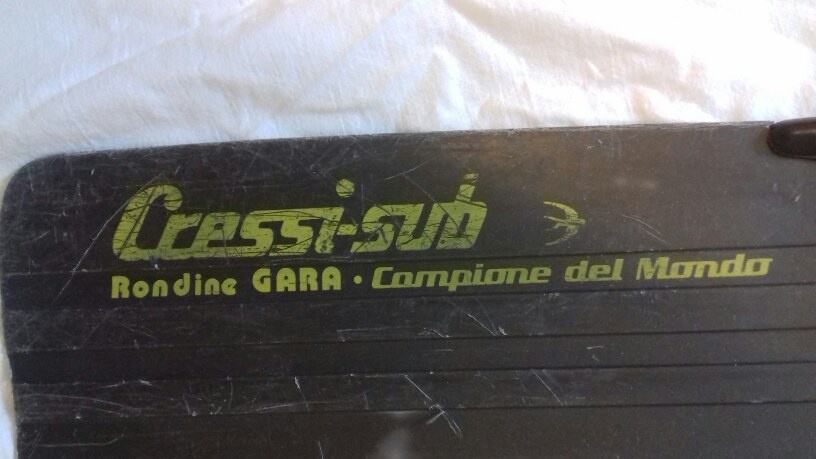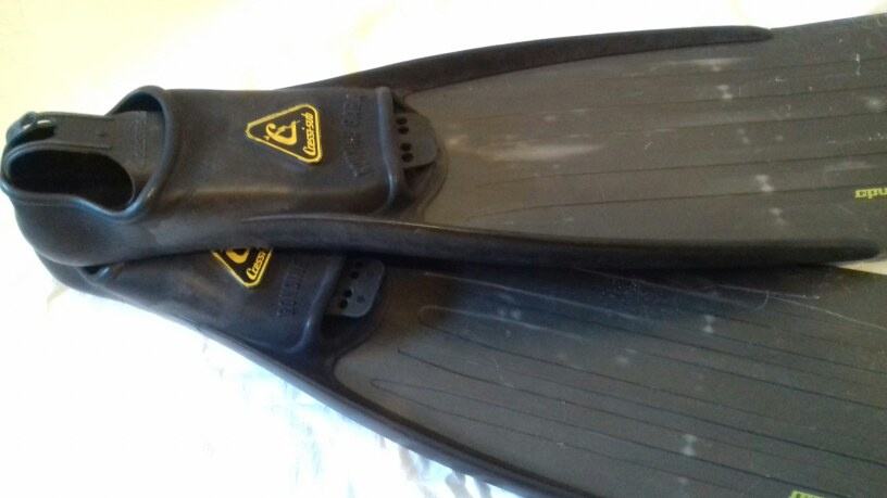 Cressi sub Rondine GARA, Campione del Mondo , vel.44-45. Peraje za podvodni ribolov s izmjenjivim listovima. Izuzetno udobna gumena ,,šlapa', održavana i bez ikakvih oštecenja'. Vidljivi tragovi korištenja u vidu manjih ogrebotina na listovima koje ne umanjuju funkcionalnost. Peraje su namjenjene za dublje zarone.....dugi listovi i odlična akcija same peraje, osiguravaju super potisak prilikom izranjanja.