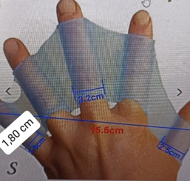M: duljina 17 cm x širina 5,5 cm, vanjski promjer: 24 cm (za djecu iznad 7 g. i žensku ruku)