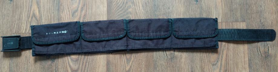 Rabljeni pojas, sa plastičnom kopčom i mrežicom za cijeđenje sa donje strane. U njega se mogu umetati, osim vrećica, i klasična olova.