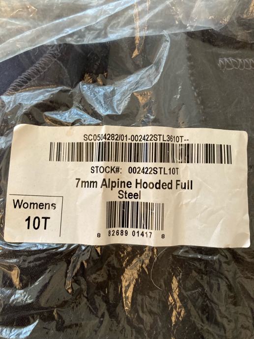 Potpuno novo, nikad koristeno BARE žensko ronilačko odijelo, 7mm jednodijelno s kapuljačom. Veličina je na etiketi 10T (odgovara evropskom broju 38-40 za visoke osobe)