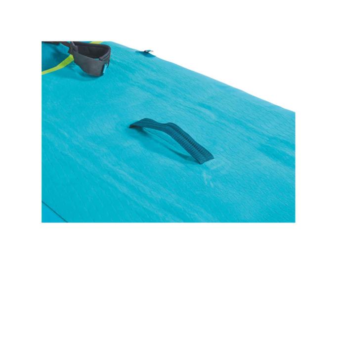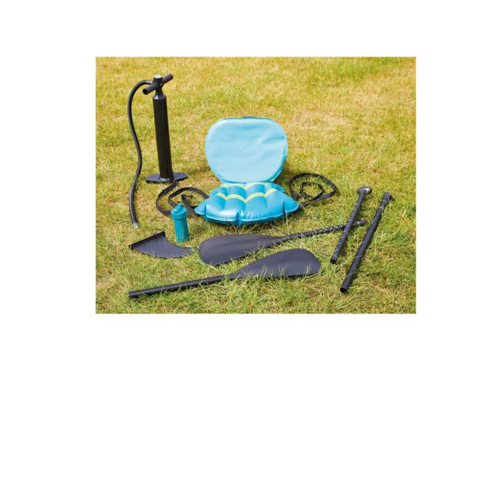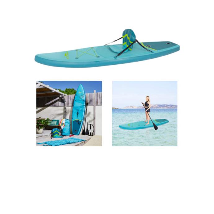 SUP (Stand Up Paddle Board) daska na napuhavanje nudi optimalnu zabavu u slobodno vrijeme za početnike ili napredne korisnike. Napuhati se može svega za par minuta i zabava već može početi. S 2-komornom konstrukcijom daska nudi povećanu sigurnost i stabilnost. Daska je dimenzije 305 x 76 x 15 cm, lako je prenosiva (teži samo 10kg) i ima maksimalnu nosivost od 115 kg. EVA baza daske osigurava optimalno prianjanje i štiti od proklizavanja. SUP dolazi u kompletu s praktičnom torbom za nošenje, zračnom pumpom s manometrom, sigurnosnim užetom na čičak, perajama, kompletom za popravak, a posebni dodatak je kajak naslon i obostrano veslo s kojim se može veslati u sjedećem položaju. Uključeno sigurnosno uže osigurava da daska uvijek ostane blizu, čak i ako padnete u vodu. Mala oštećenja ili ventili koji propuštaju mogu se brzo popraviti uz pomoć priloženog seta za popravak i detaljnim uputstvima. Ako se na trupu pojavi mjehurić kao na slici (bez panike) potrebno ga je samo oprezno probušiti i ispustiti zrak, a malu rupicu zalijepiti ljepilom iz seta za popravak. Najčešći uzrok takve pojave je kada je SUP dugo izložen jakom suncu i gornji sloj se odvoji od trupa no može se brzo sanirati na licu mjesta i to nije razlog za reklamaciju.