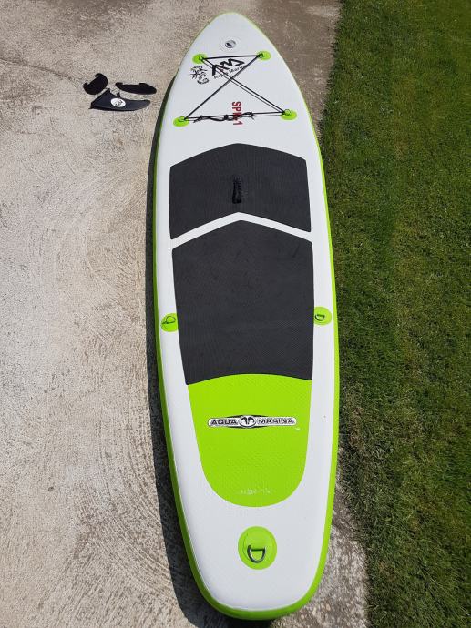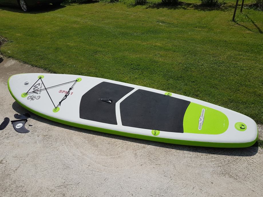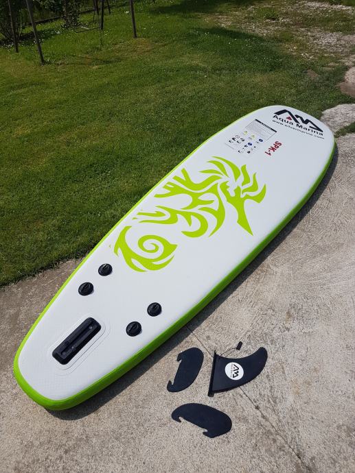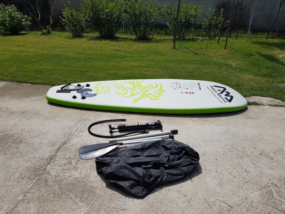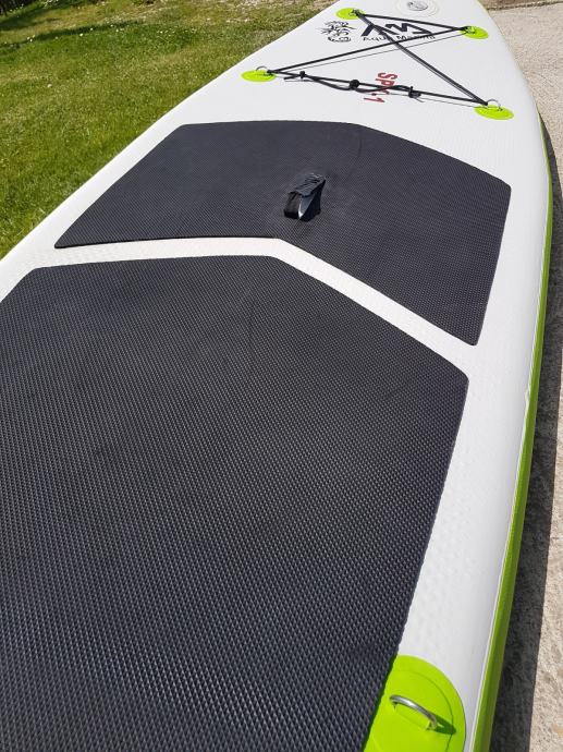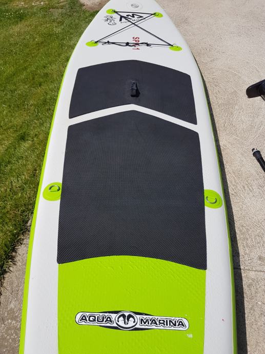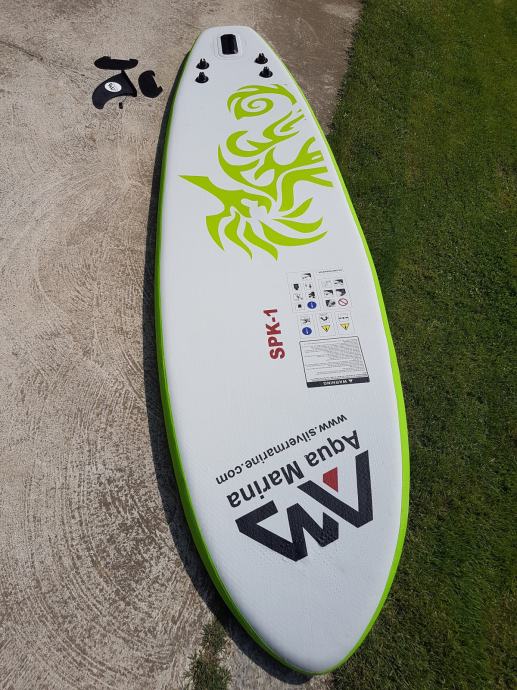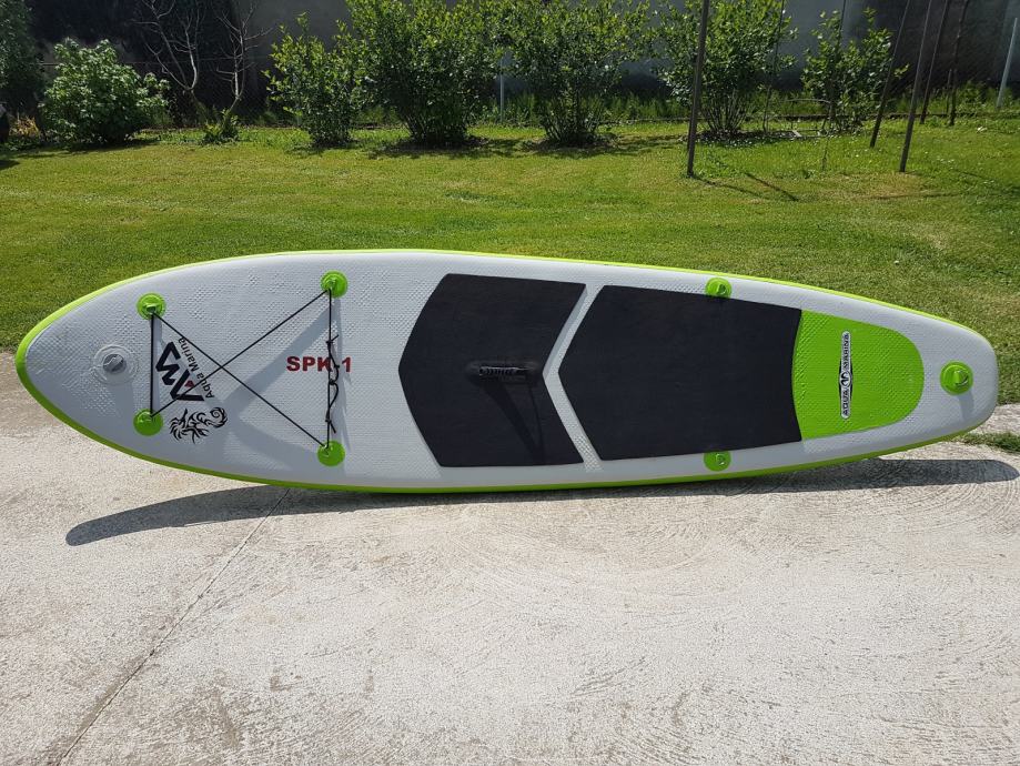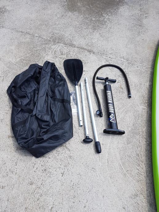 Daska je jako dobro ocuvana I bez ikakvih ostecenja. Daska dolazi s torbom, veslom i pumpom za napuhavanje.