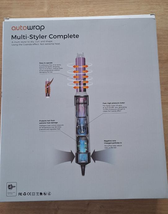 Prodajem nov Autowrap Multi-Styler Complete, višenamjenski uređaj za sušenje, kovrčanje i oblikovanje kose. Radi na principu Coanda efekta bez ekstremne topline, što znači da štiti kosu od prekomjernog oštećenja visokim temperaturama.