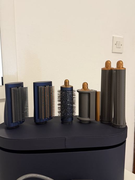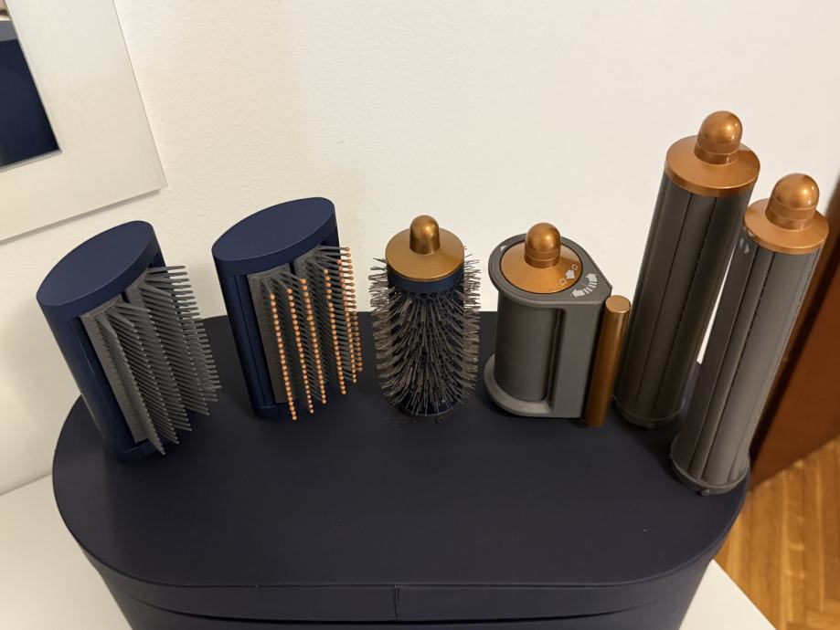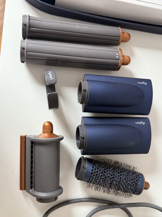 Dyson Airwrap Complete Long Prussian Blue. Korišten dva puta, ali jednostavno nije za moju kosu koja je izrazito duga i gusta. Uređaj radi odlično i posuši mi kosu za 5 minuta. Starija verzija bez Bluetootha, ali nije ni potreban. Uređaj registriran u aplikaciji. Može i primopredaja na području Maksimira.
