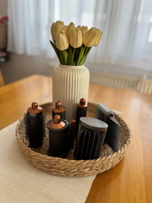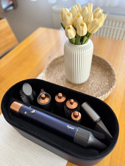 Prodajem Dyson Airwrap Complete, uređaj za sušenje i stiliziranje kose. Uređaj dolazi s kutijom za pohranu i šest nastavaka od kojih su dva za uvijanje kose, četka za ravnanje i zaglađivanje kose, okrugla četka za feniranje, češalj za sušenje i raščešljavanje kose te nastavak za sušenje kose. Potpuno očuvan, bez ikakvih oštećenja te vrlo malo korišten.
