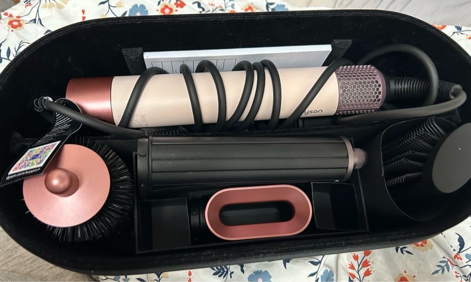 Prodajem rabljeni Dyson Airwrap u rozoj boji. Dolazi s više nastavaka kao što je prijazano na slici. Svi nastavci su uključeni. Korišteni samo fen i četka.