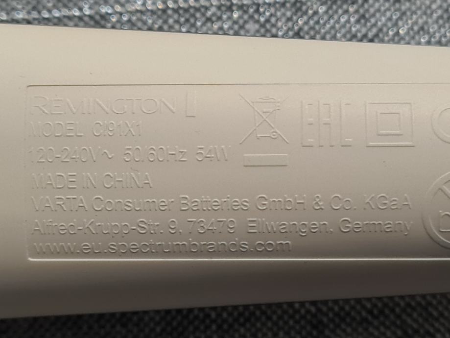 Remington figaro model CI91X1, tehnologija OPTIheat. Integrirani digitalni display 120-210 C. Promjer cijevi 25-38 mm za kreiranje lokni. Postavka PRO+ namjenjena je zdravijem i boljem kovrčanju na temp. 185 C. Korišten rijetko tokom 3 godine