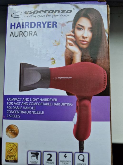 Prodajem Esperanza putni fen za kosu. Fen ima dvije brzine sušenja kose i sklopivu ručku radi lakšeg transporta. Fen je nekorišten.