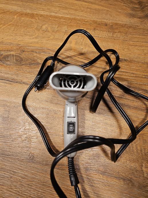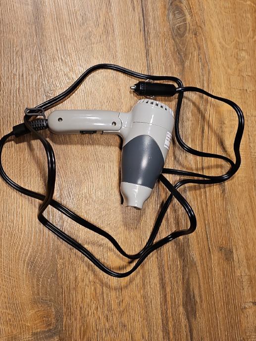 Fen za sušenje kose, mali i kompaktan s preklopnom ručkom. 12V auto upaljač napajanje. Nekorišten, potpuno ispravan.