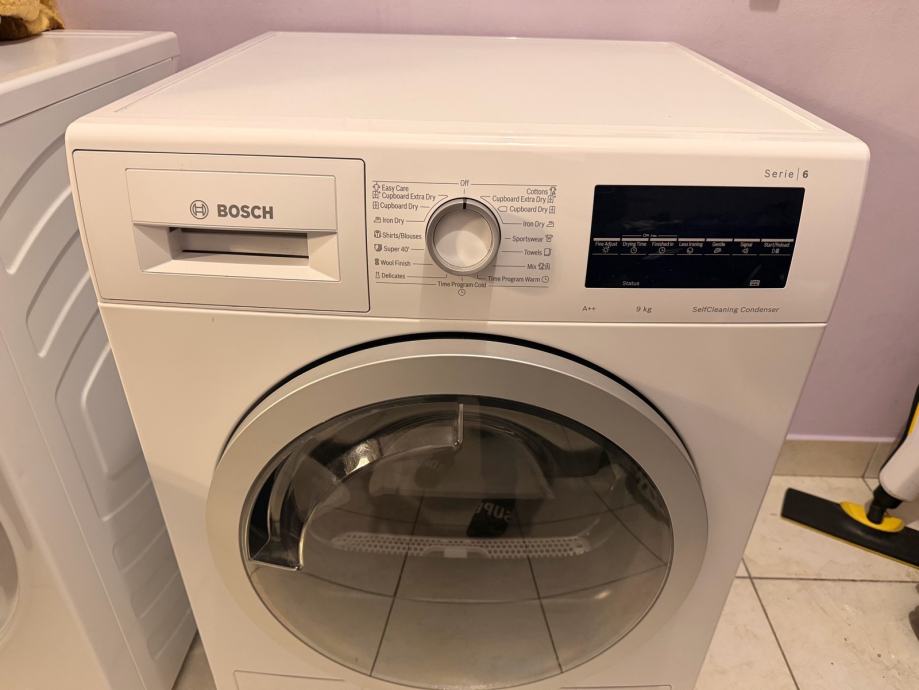 Prodajem Bosch Serie 6 sušilicu rublja u bijeloj boji. Radi se o kondenzacijskoj sušilici kapaciteta 9 kg, energetske klase A++, s tehnologijom SelfCleaning Condenser koja automatski čisti kondenzator i time održava učinkovitost uređaja.