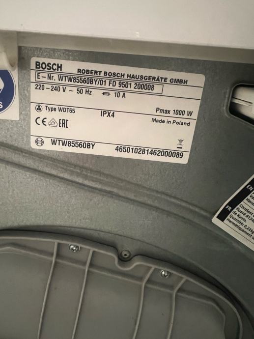 WTW85560BY/01, radi 2-3 pauze u ciklusu sušenja. Prodajem jer je kupljena nova.