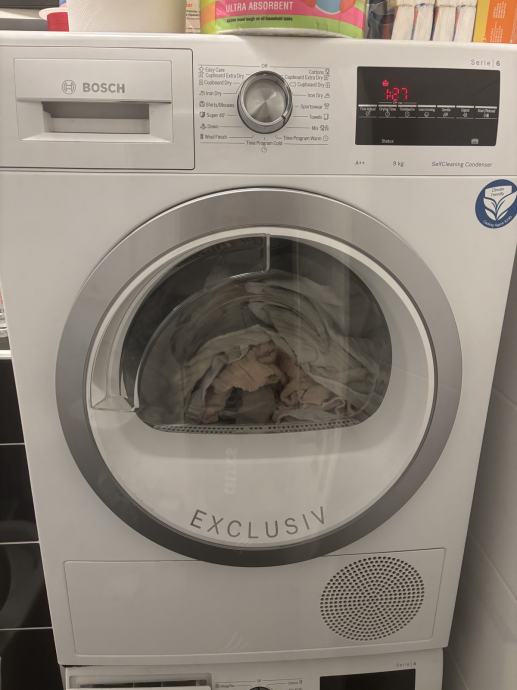 Ispravno i sve radi perfektno, samo se tokom ciklusa 3-4 puta zaustavi te je potrebno isprazniti sakupljač kondenzata iako nije potpuno pun, te je ponovno pokrenuti (u slikama se vidi znak koji se pojavi na displayu). Rublje savršeno suho. Vjerojatno je problem u senzoru vlage, ali mi se ne da popravljati te sam kupio novu sušilicu.