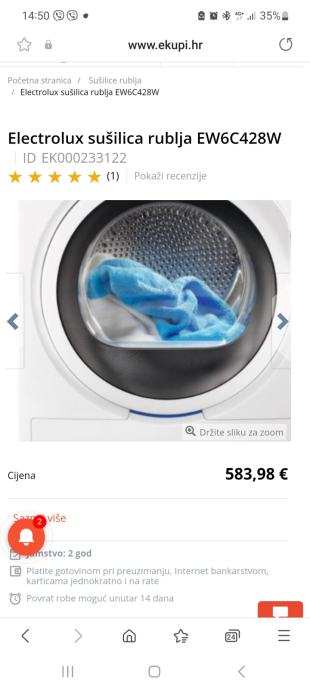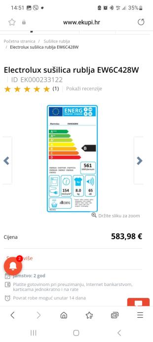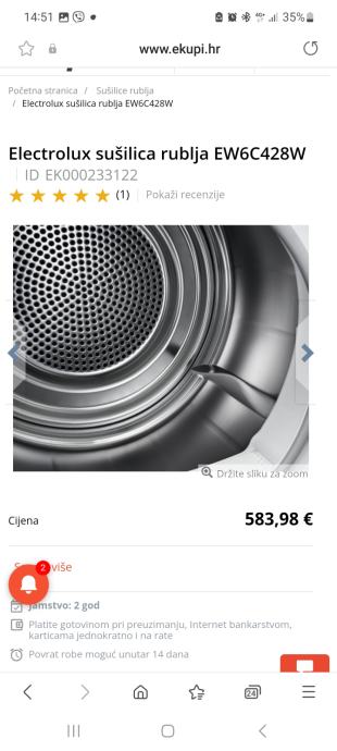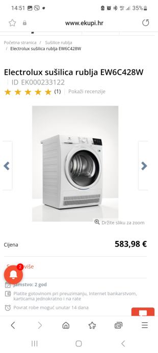 Prodajem electrolux sušilicu rublja, u izvanrednom stanju, kondenzacijska, 8 kg rublja