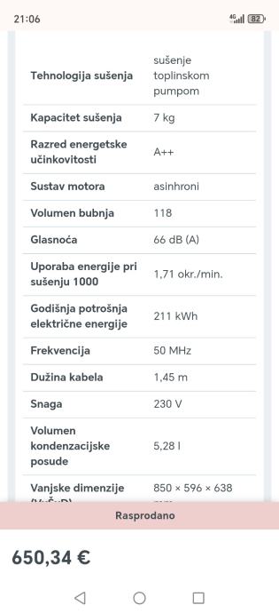 Prodajem sušilicu rublja staru 4 godine. U ispravnom stanju i bez greške. Kupljena nova većeg kapaciteta.