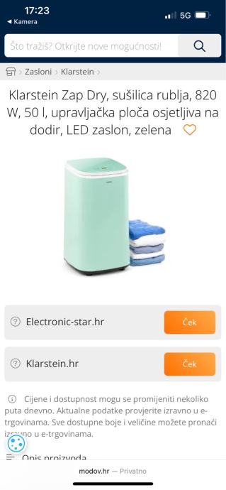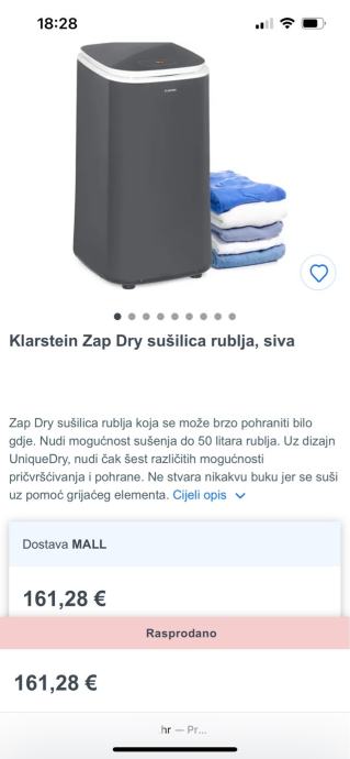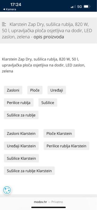 Prodajem nekoliko puta koristenu Klarstein Zap Dry susilicu.