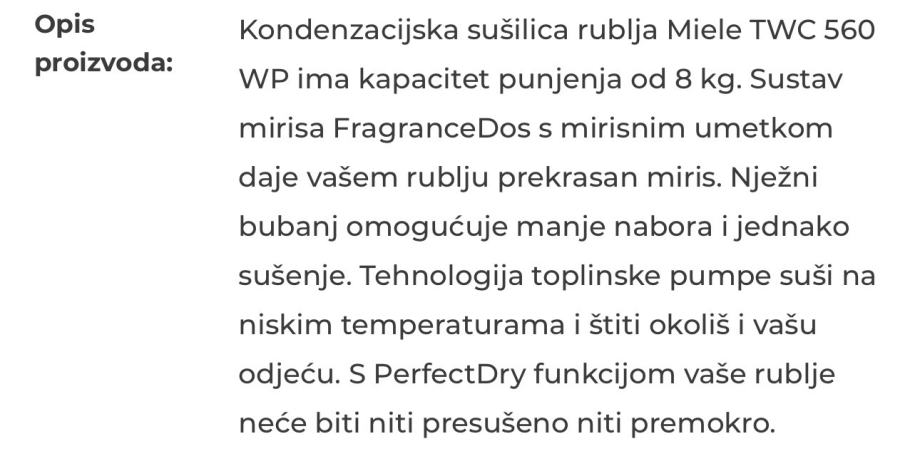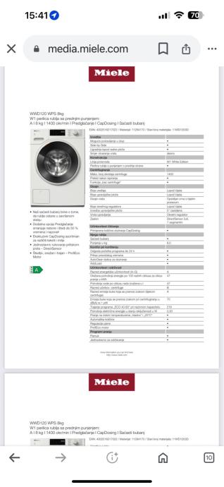Prodajem rabljenu Miele perilicu rublja i kondenzacijsku sušilicu rublja model 2 odvojena uredjaja. TWC 560 WP. Miele je poznati njemački proizvođač kvalitetnih kućanskih uređaja s dugim vijekom trajanja. Uređaj je energetski učinkovit s modernim dizajnom i naprednim funkcijama za nježno sušenje vaše odjeće.