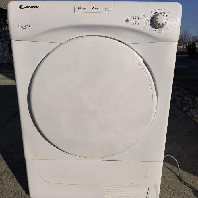 Prodajem Candy sušilicu rublja u bijeloj boji. Sušilica ima kapacitet od 7 kg i opremljena je s više programa sušenja za različite vrste tkanina. Upravljanje je jednostavno pomoću rotacijske tipke na prednjoj strani. Radi se o kondenzacijskoj sušilici s donjim rezervoarom.