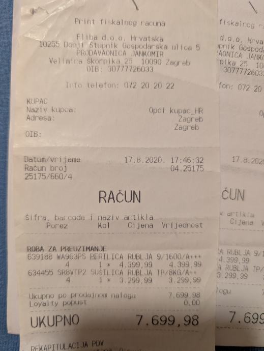 Kupljeno u Emmezeti 17.08.2020. (garancija istekla)