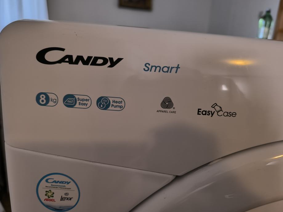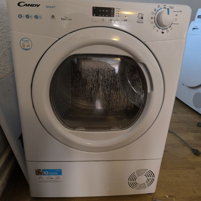 Prodajem Candy Smart kondenzacijaku sušilicu veša s toplotnom pumpom, kapaciteta 8 kg. Sušilica ima funkciju Hand Damp za delikatno sušenje osjetljivih tkanina, Easy Case za jednostavno rukovanje te brojne programe uključujući Super Easy opciju. Oprema uključuje Smart Touch tehnologiju za kontrolu putem mobilnog uređaja. Dobro funkcionira i obavlja svoj posao.