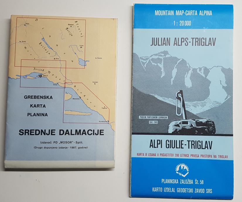 2 PLANINARSKE KARTE SREDNJA DALMACIJA MOSOR i TRIGLAV