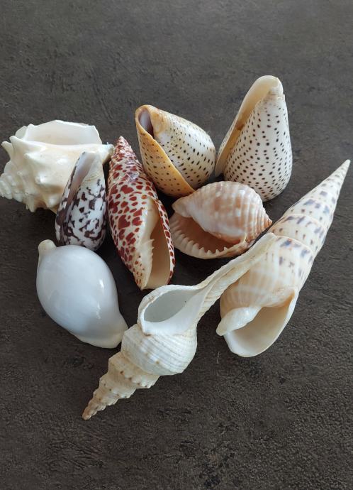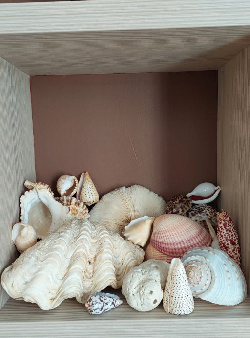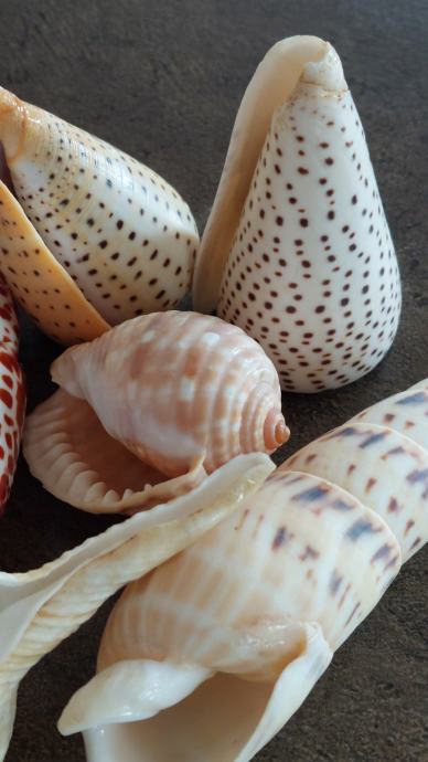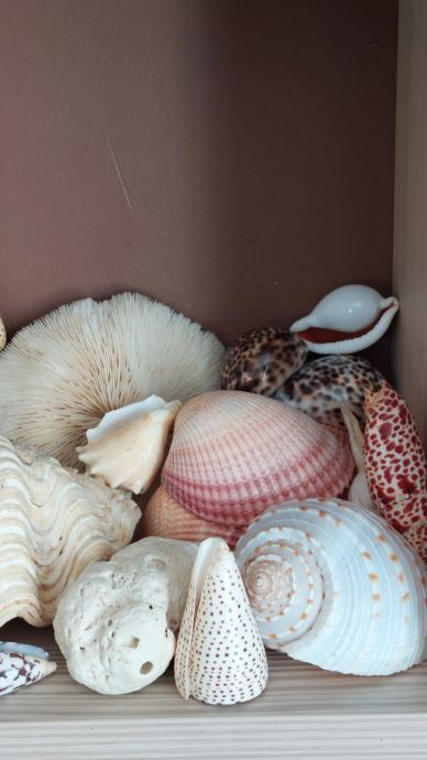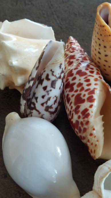 Puževi i školjka su vrlo očuvani i držani na polici.