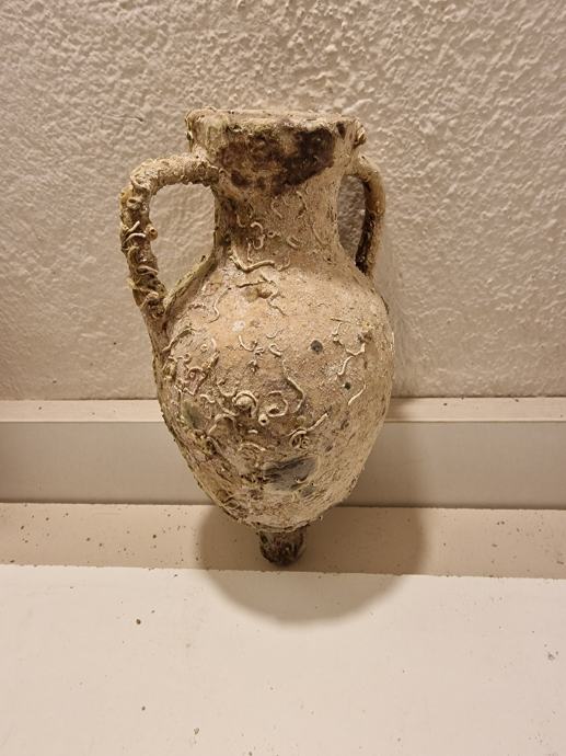 Ručni rad , materijal pečena glina. Rađene su prema originalima 1/1. Amfore se nalaze u moru kako bi prirodnim putem skupljale koralj i alge .Nakon što se osuše praktički je nemoguće vidjeti razliku u odnosu na orginal.