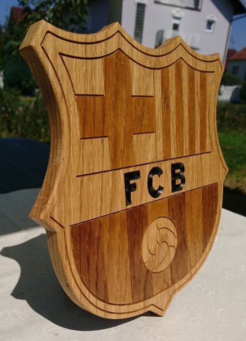 Prodajem grb Barcelone izrađen od drveta (hrast, jasen).