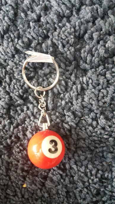 Privjesak biljarska kugla br. 3. Kugla izrađena od istog materijala kao i prava biljarska kugla! Dužina privjeska 8.5 cm, promjer kugle 25 mm.