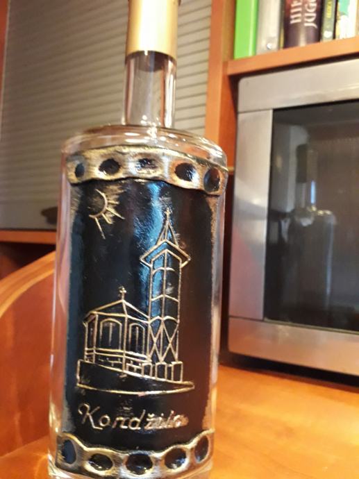 staklena boca od 0,5 litara, naljepnica je od keramike ručno oslikana