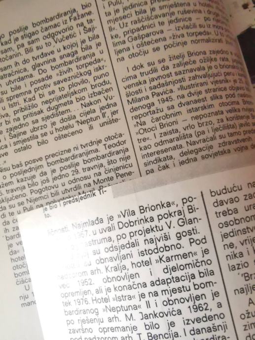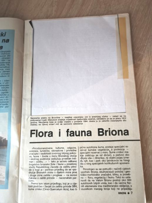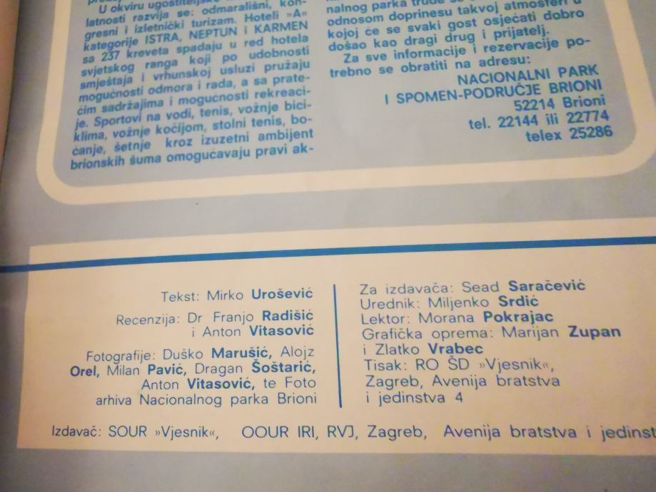Brioni - brosura 1984., Mirko Urosevic, nacionalni park i spomen podrucje, meki uvez, 74 strana, na četiri stranice izrezane slike te je zbog toga prilagođena cijena inače vrlo dobro